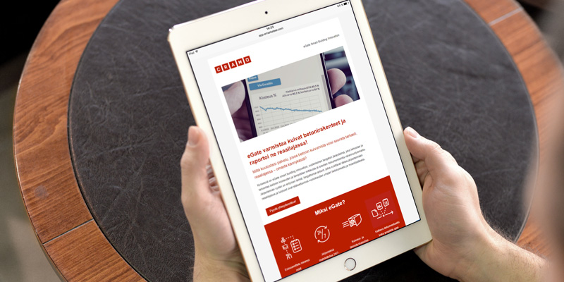 Miltä kuulostaisi palvelu, jossa betonin kuivumista voisi seurata tarkasti, reaaliajassa – omasta kännykästä? Kyseessä on eGate smart building innovation, uuden¬lainen langaton järjestelmä, joka tehostaa ja tarkentaa betonin kosteuden ja lämpötilan mittausta ja tulosten dokumentointia raken¬nustyömailla.