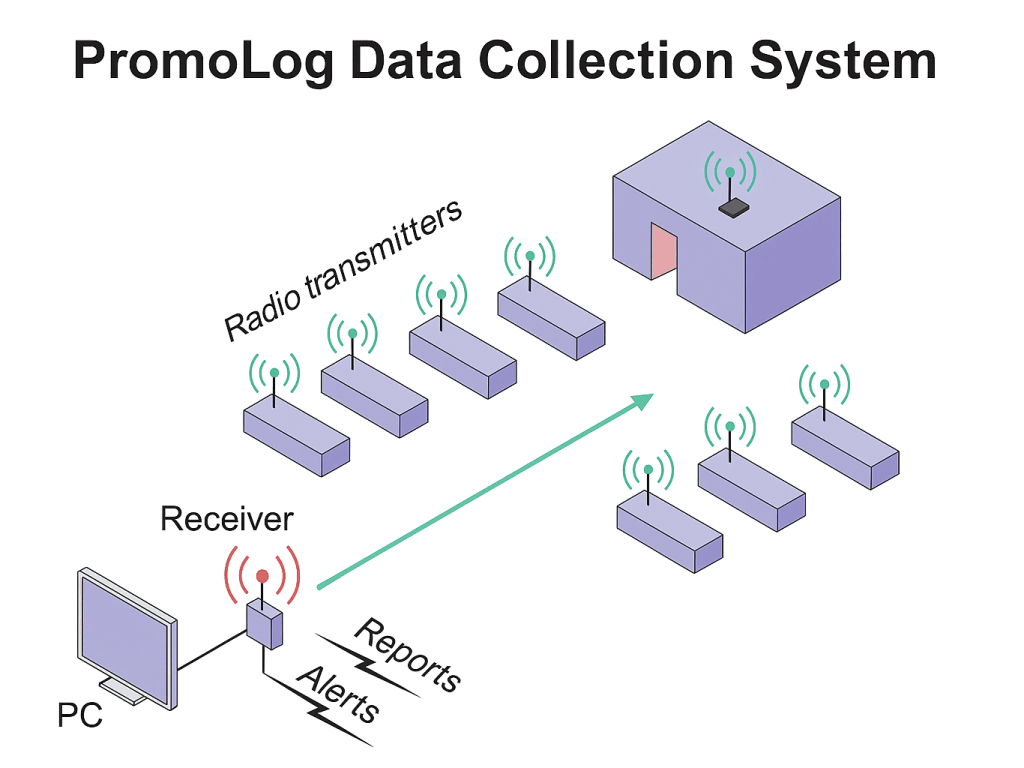 Combined device with 5 measured quantities in the same configuration. Ideal for measuring the conditions of a construction site or an existing building. Requires Base station.